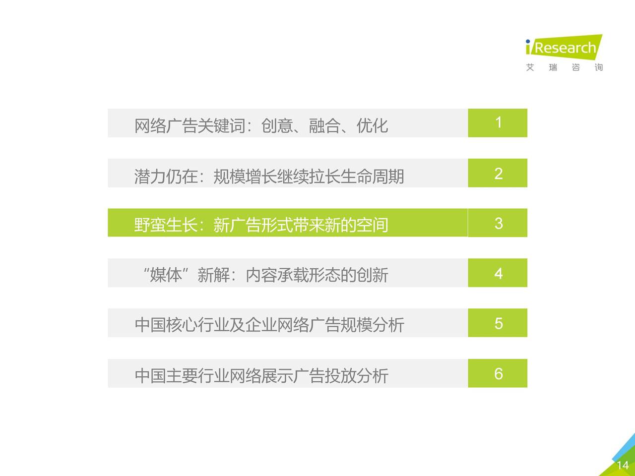 中国网络广告市场规模包括品牌图形、视频广告、付费搜索、固定文字链、分类广告、